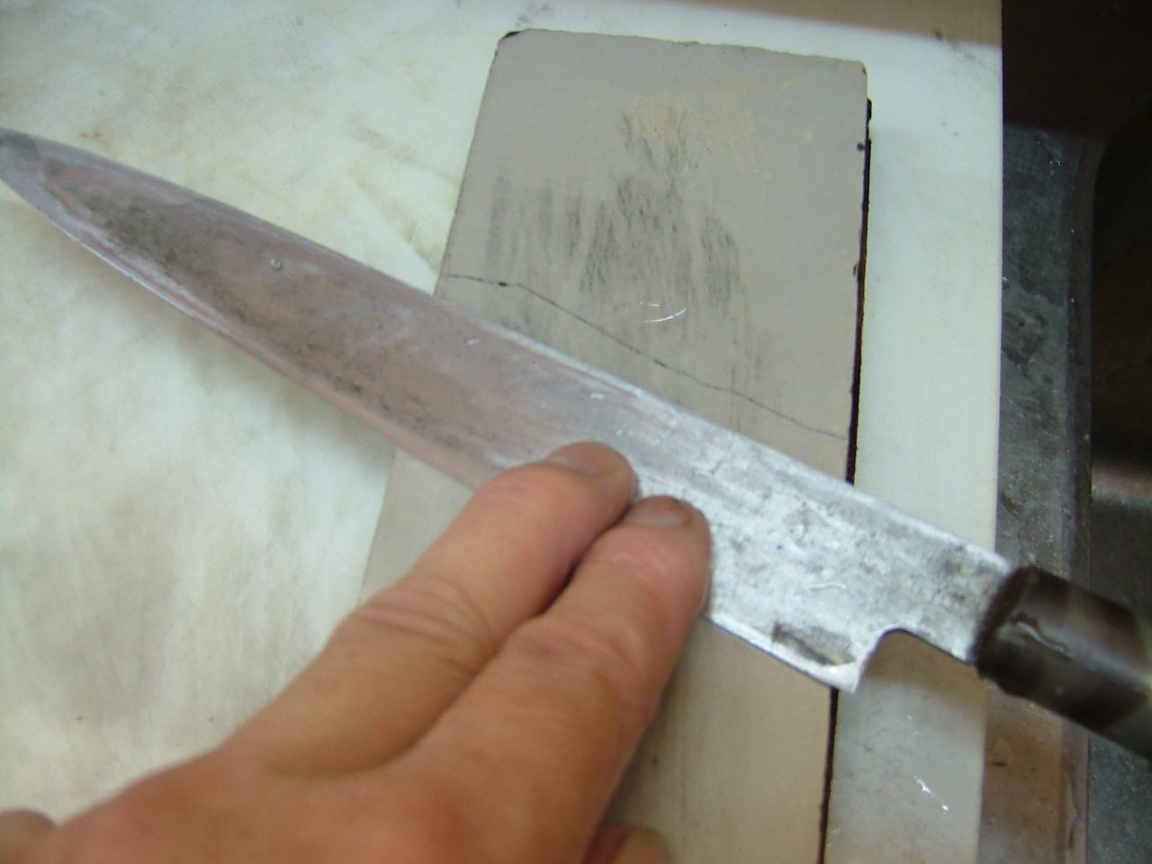 写真は刺身包丁ですが、出刃包丁でも、薄刃でも