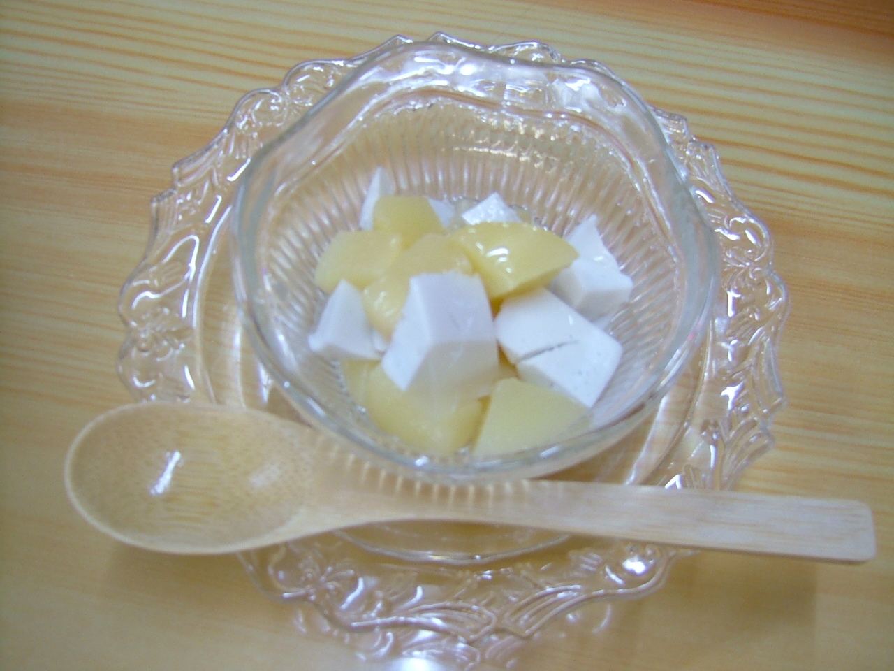 桃はキューブに切って砂糖と蜂蜜で煮ました。